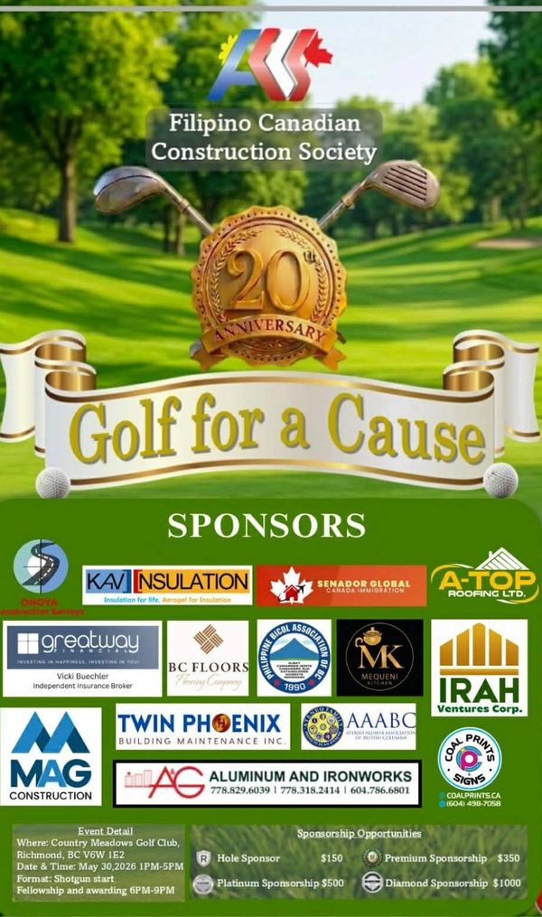 The Filipino Canadian Construction Society is celebrating its 20th Anniversary by hosting a special golf fundraising event.